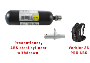 Nicht vom Rückruf betroffen sind: Karbonpatronen, Stahlpatronen mit einem Fülldatum nach dem 03.12.2014 - ABS Monoairbags - SALEWA Verbier 26 Pro ABS Rucksäcke, die bisher nicht mit einer Stahlpatrone ausgelöst wurden Der gesamte Rückruf wird über ABS abgewickelt. Endkonsumenten und Handel wurden von ABS über den Rückruf informiert. Zusätzlich hat ABS eine Hotline für Händler und Endkonsumenten eingerichtet. Alle Informationen zur Rückrufaktion finden Sie unter: