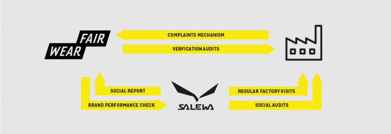 • Regular factory visits: Salewa employees regularly visit production sites during the various development and production stages to verify the required quality standards and working conditions.