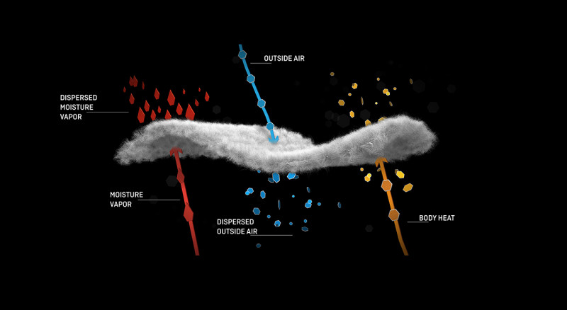 La estructura de malla ligera de baja densidad y alta resistencia de la tecnología textil Alpha® ofrece dos ventajas de rendimiento bien diferenciadas: permite que Alpha® transpire dos veces mejor y hace que se seque un 60 % más rápido que otros materiales de aislamiento de calidad superior.